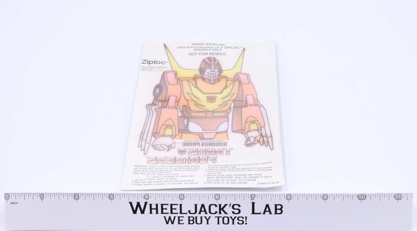 Condition: This item is an Iron-On Rodimus Prime Premium for purchase of Ziplock bags. It is new and in its factory-sealed package. This item is an authentic vintage Hasbro item. This item is not a fake, bootleg, reissue, remake, or encore. This item comes as shown.