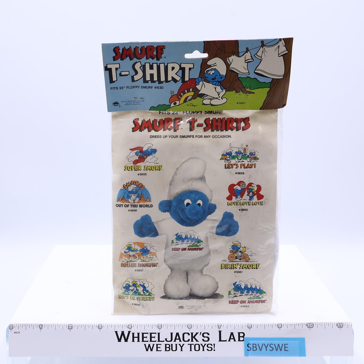 Bikin' Smurf T-Shirt for 22" Floppy Plush The Smurfs 1981 Vintage NEW SEALED