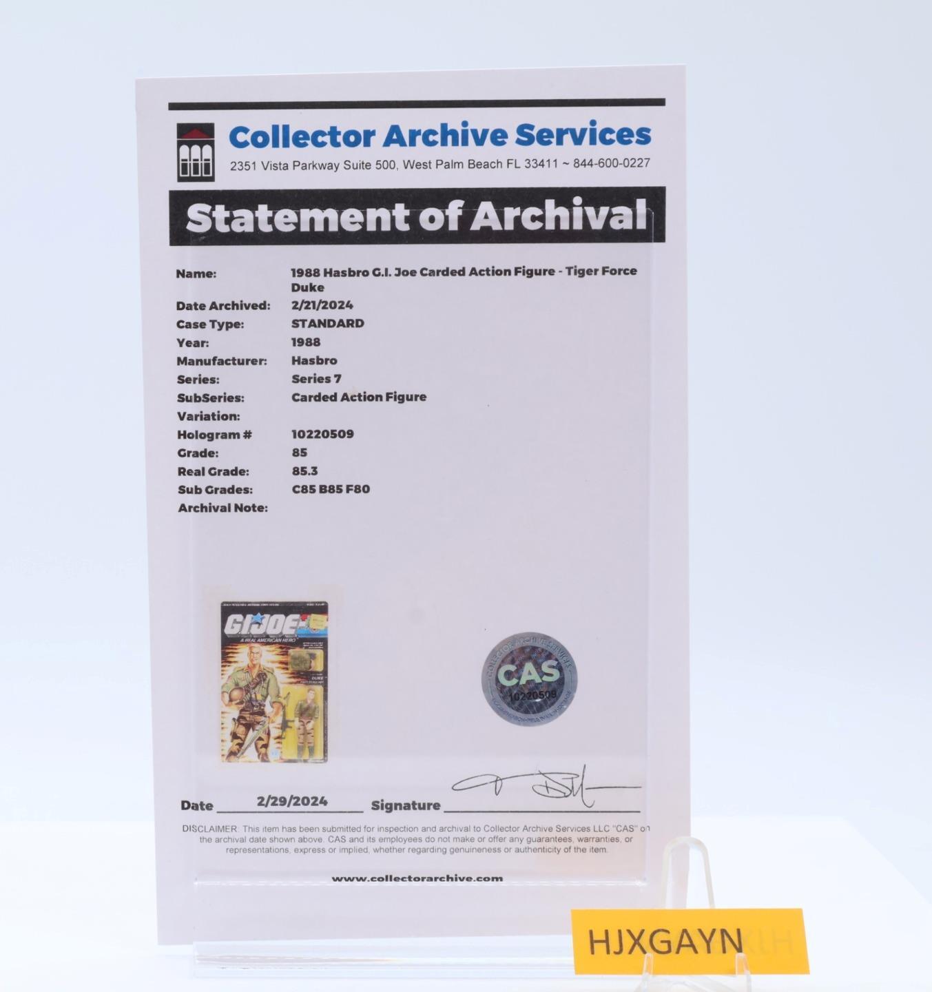 Duke Tiger Force CAS GRADED 85 85/85/80 GI Joe 1988 Hasbro Figure NEW SEALED