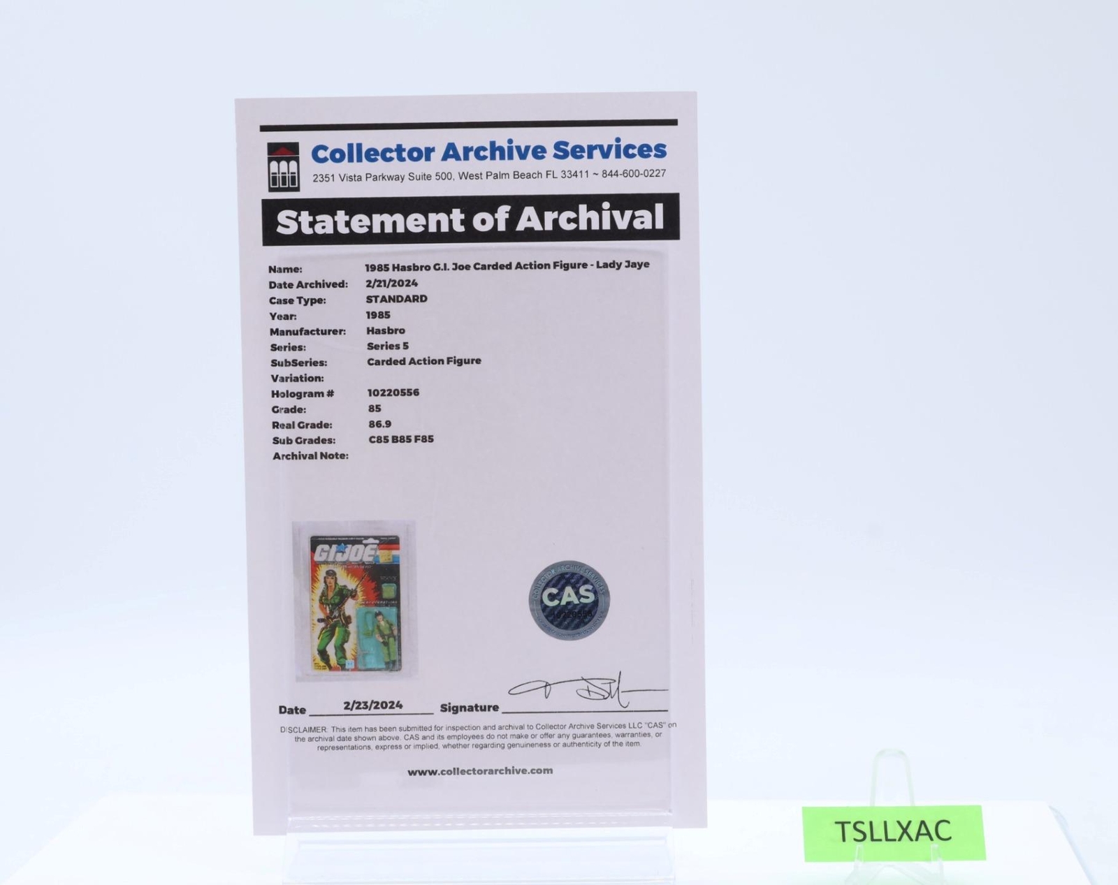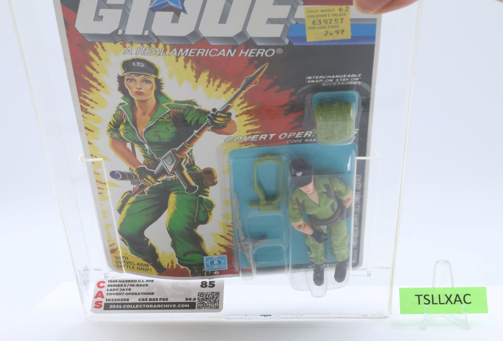 Lady Jaye CAS GRADED 85 85/85/85 GI Joe 36-Back 1985 Hasbro Figure NEW SEALED