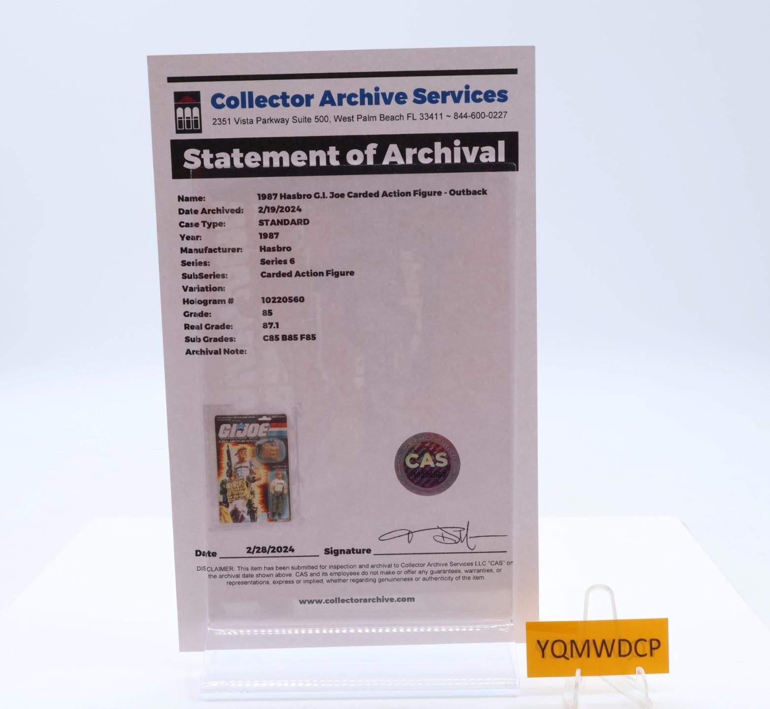 Outback CAS GRADED 85 85/85/85 GI Joe 34-Back 1987 Hasbro Figure NEW SEALED