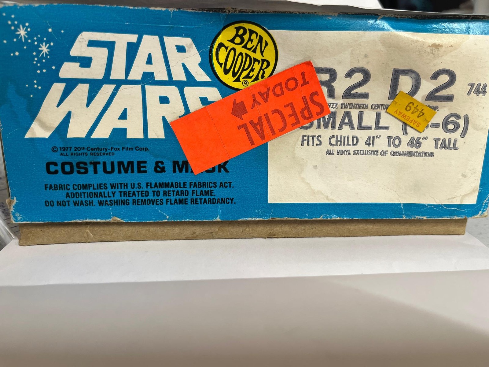 R2D2 Halloween Costume & Mask w/ Box Star Wars 1977 Ben Cooper Children's SMALL