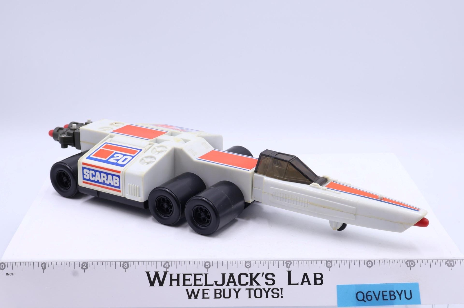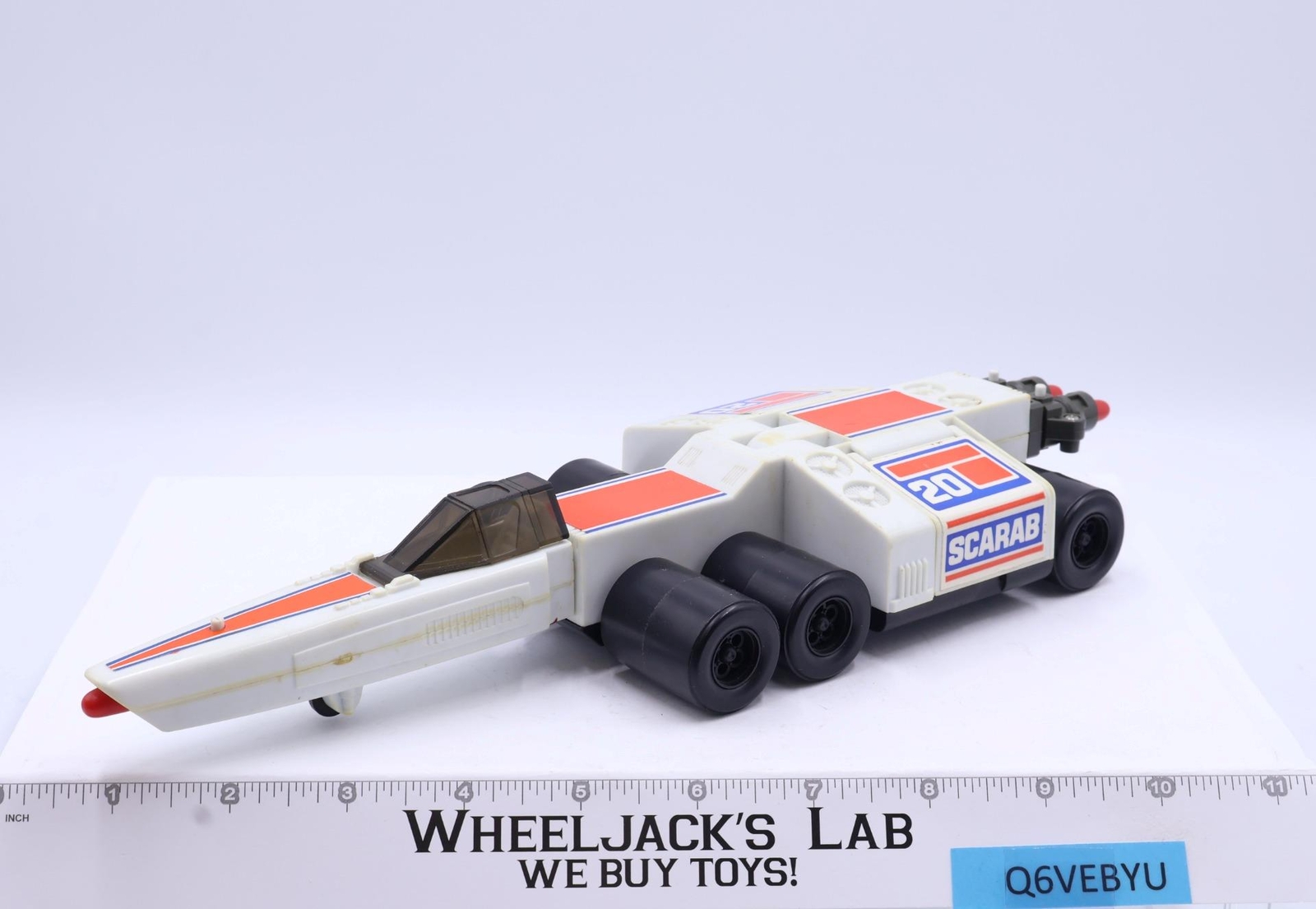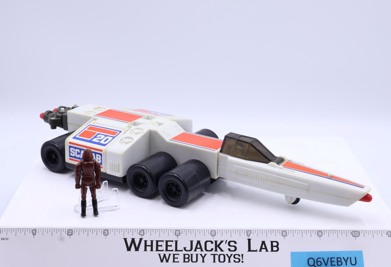Condition: Rated 80 with some wear and yellowing, needs cleaning. The missile launchers work- this version does not fully fire. Our grading scale is 1 - 100, with mint flawless a 100, near mint a 95, excellent a 90, and so on. Comes as shown.