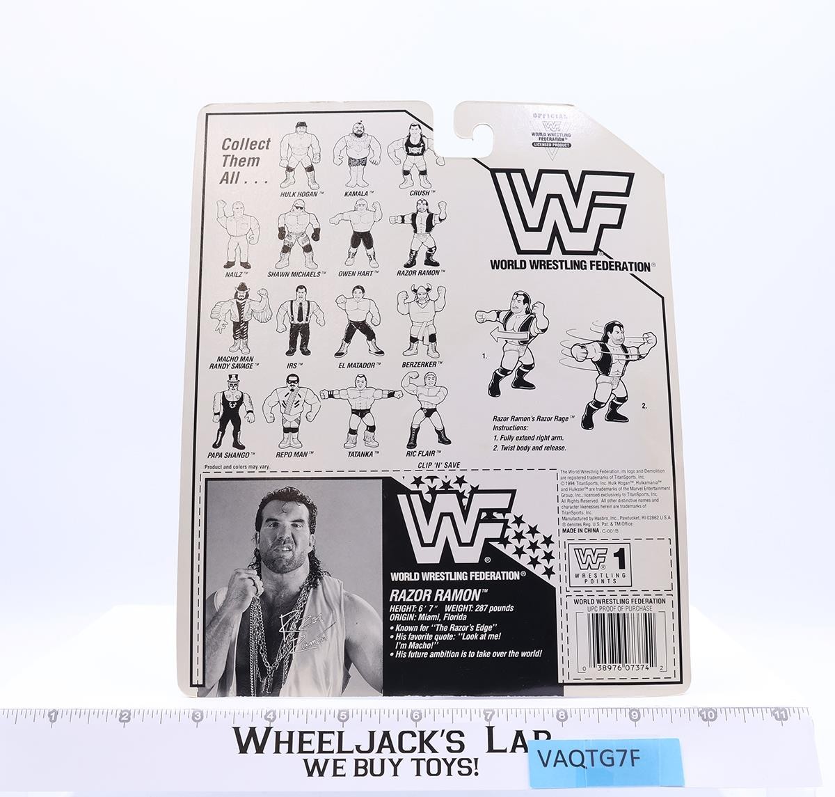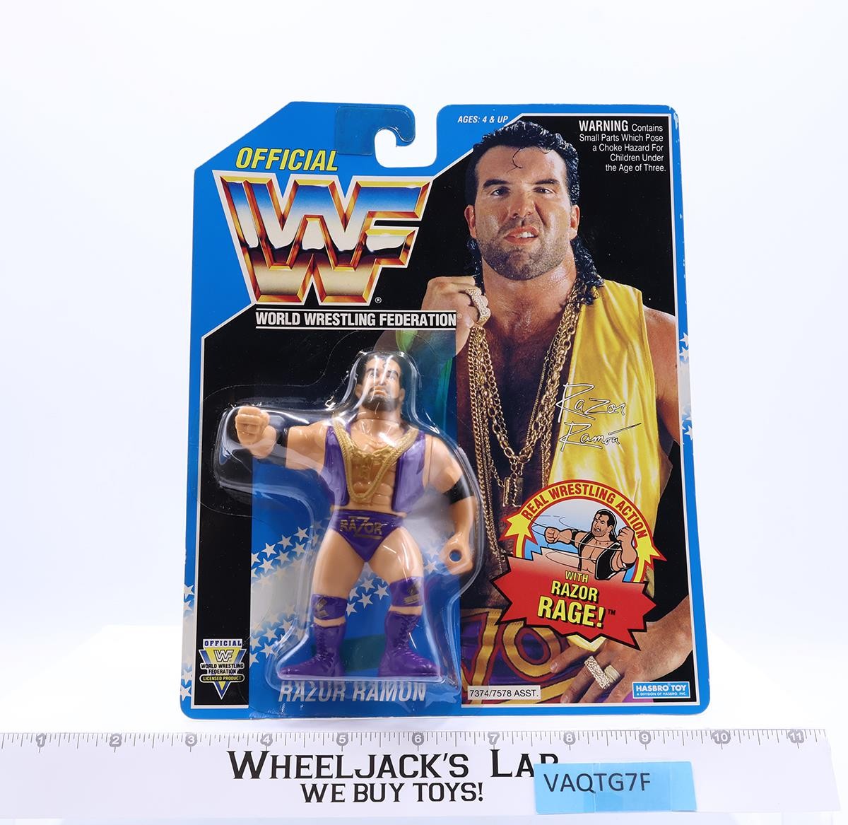 Razor Ramon PURPLE TRUNKS WWF Wrestling Blue Card 1994 Hasbro Figure MOSC New
