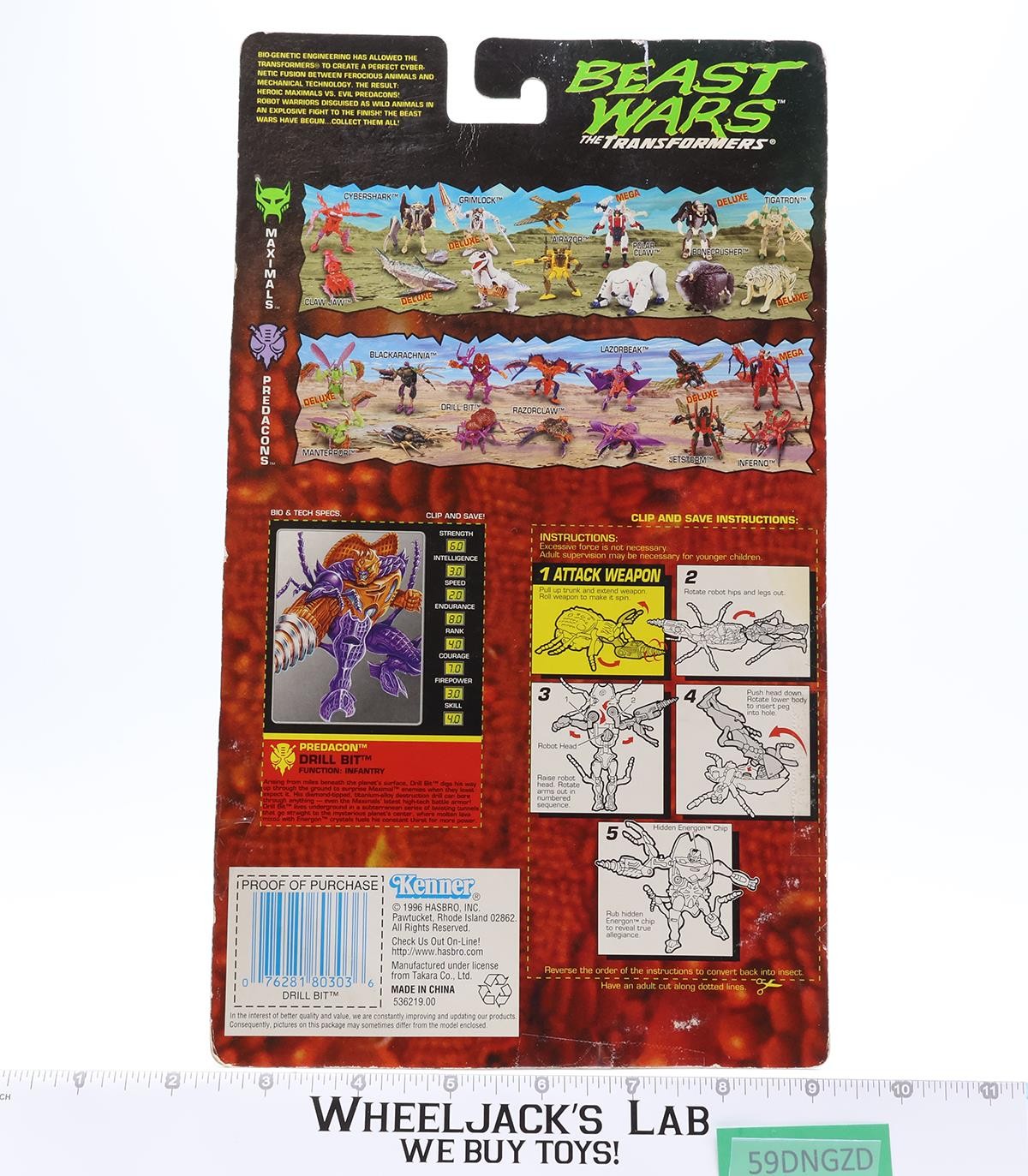 Drill Bit 100% Complete W/Card & Bubble Beast Wars Transformers 1996 Hasbro NM