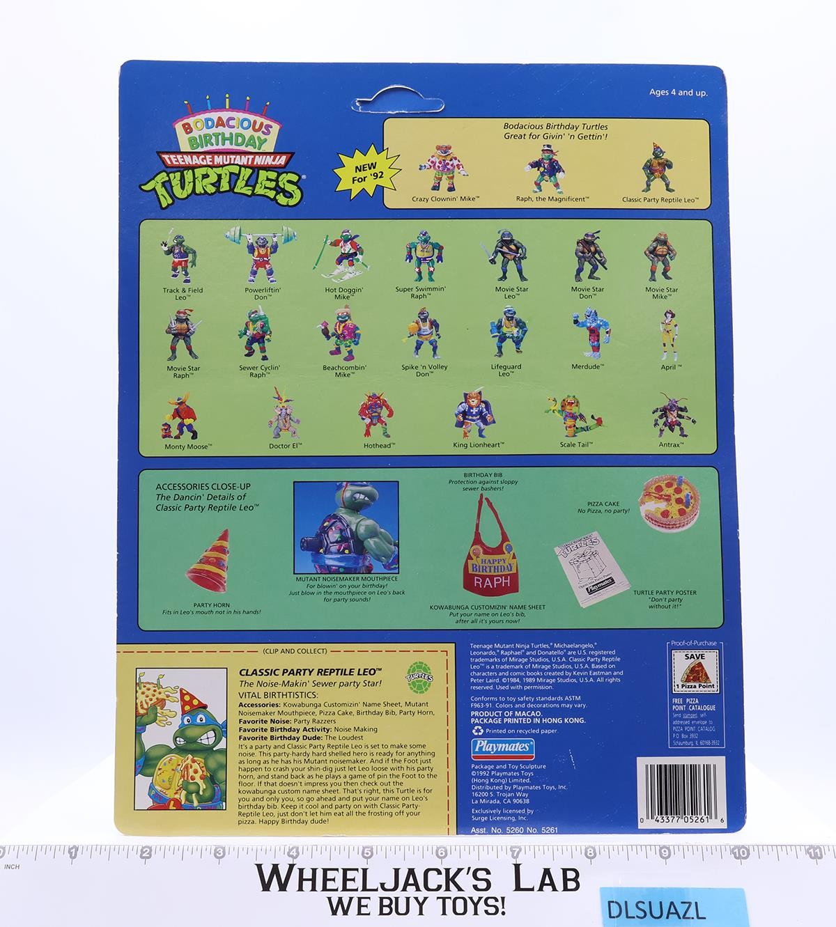Classic Party Reptile Leo Bodacious Birthday TMNT 1992 Playmates MOSC UNPUNCHED