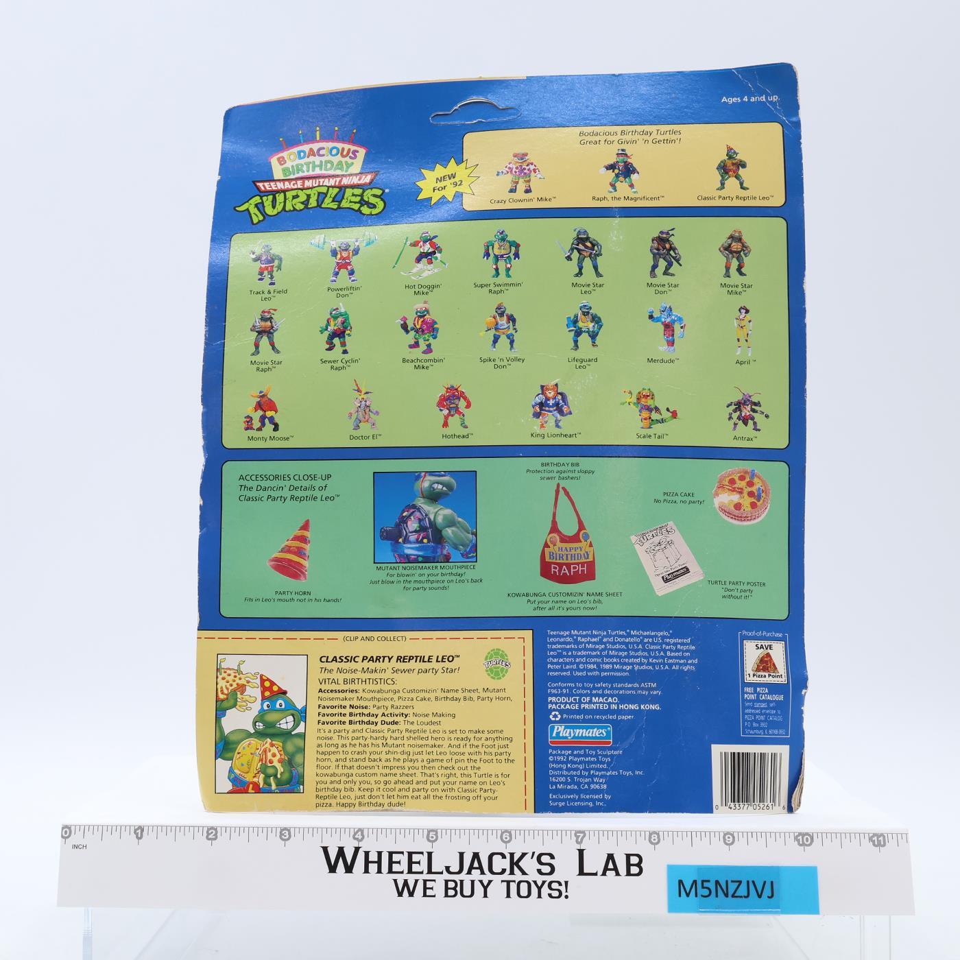 Classic Party Reptile Leo Bodacious Birthday TMNT 1992 Playmates MOSC UNPUNCHED