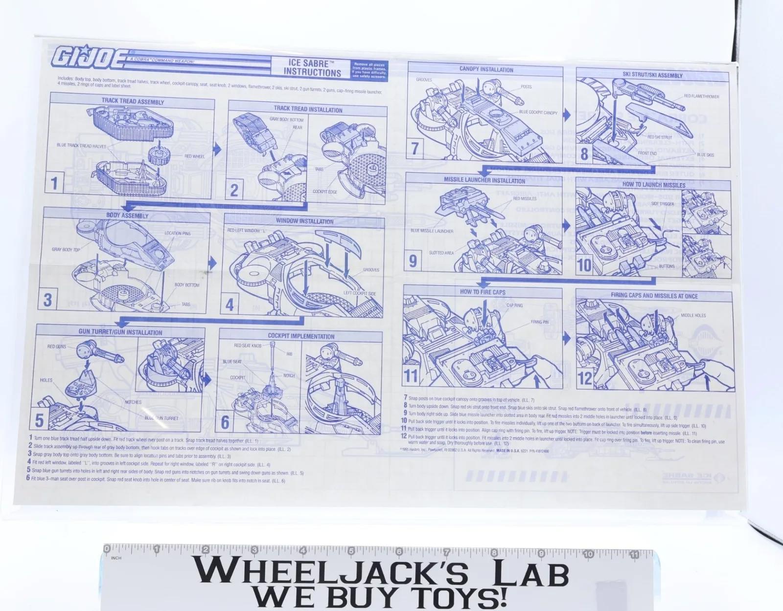 Ice Sabre 1992 ORIGINAL Instructions/ Blueprints G.I. Joe Hasbro Action Figure
