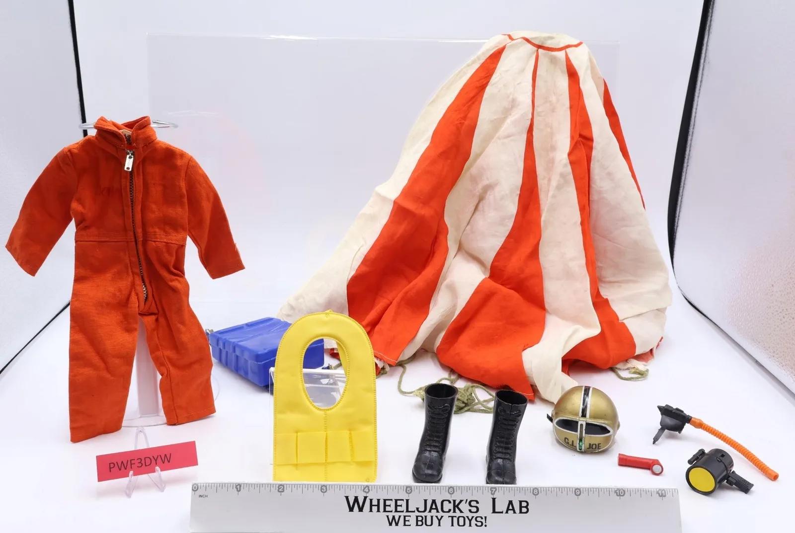 Item Condition: Rated 80 with some wear. Complete set!! Some of the items need cleaning. The parachute is in good condition. The zipper on the uniform works. The name "Kim" is written in red on the right chest of the uniform. The tab on one side of the face mask is broken and a small piece of wire is in its place so it can function. Our grading scale is 1 - 100 with mint flawless items a 100, near mint items a 95, excellent items a 90, and so on. Comes as shown.