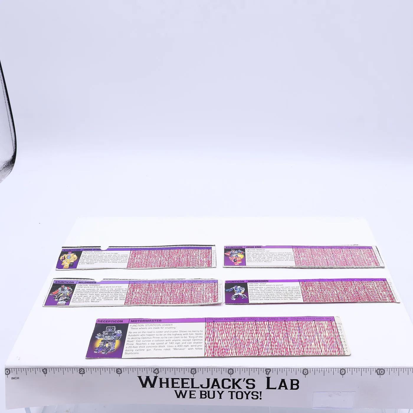 Menasor Lot of 5 Action Figure Tech Specs 1986 Vintage Hasbro G1 Transformers
