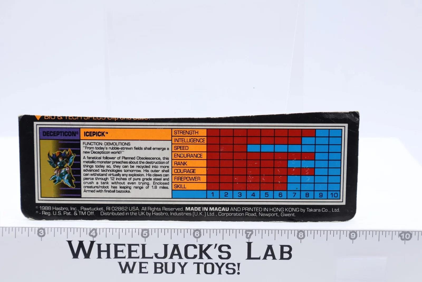 Icepick Tech Spec 1989 Vintage Hasbro G1 Transformers Action Figure