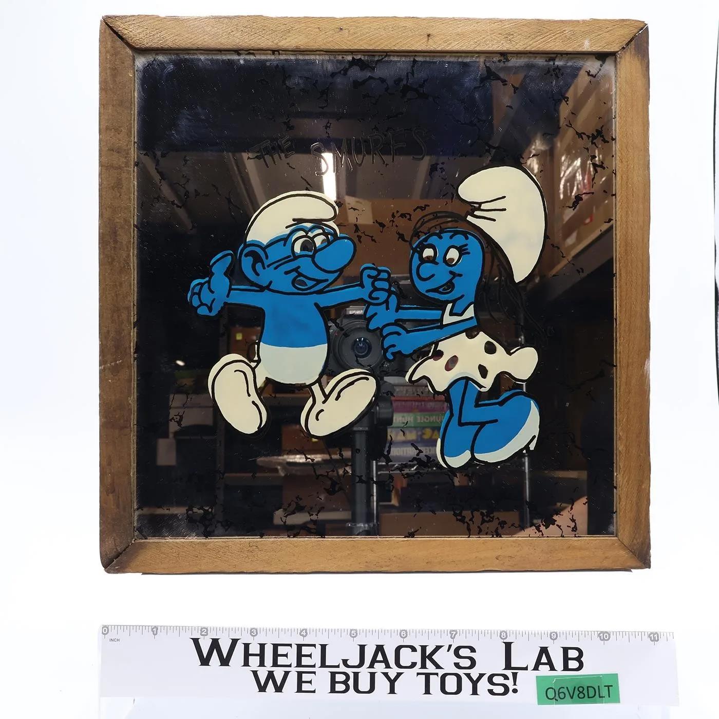 Framed Smurf Art Mirror Picture Carnival Prize Smurfs Vintage 13 x 13