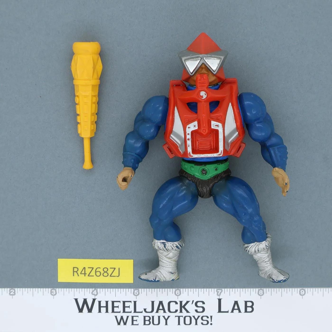 Condition: Rated 88 with light wear. Nice blue arms and legs. Light paint wear on helmet, hands, boots. The mechanism works. Our grading scale is 1 - 100, with mint flawless a 100, near mint a 95, excellent a 90, and so on. Comes as shown.Accessories: 100% Complete.Joint Condition: Semi-tight. He will stand.