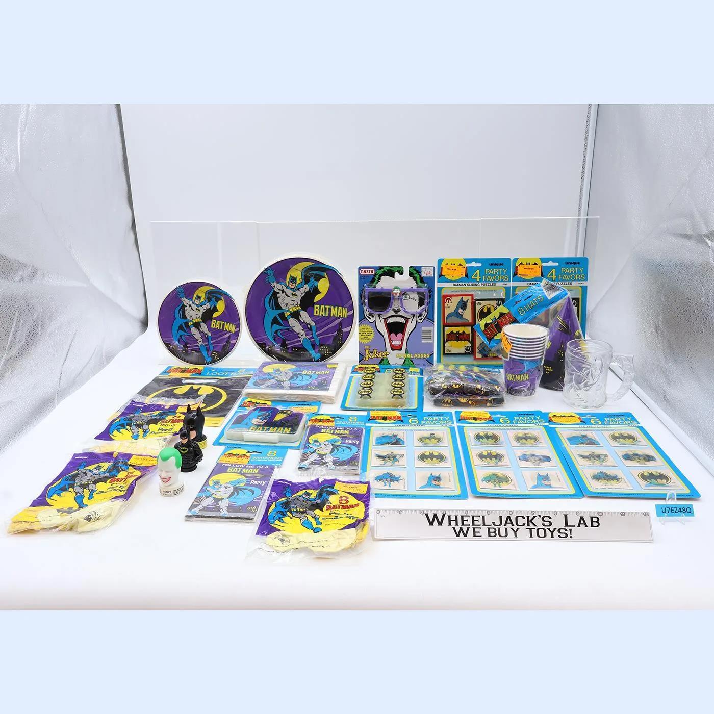 Giant lot of Batman Party Supplies + Party Favors 1980s Unique NEW SEALED