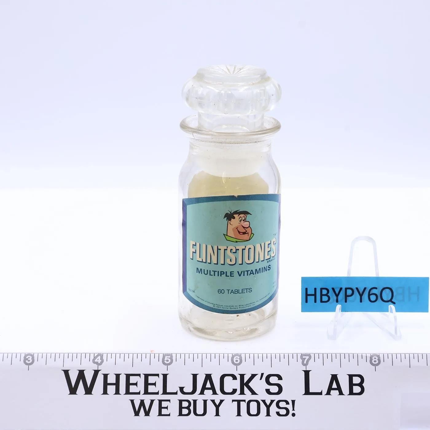 Flintstones Multiple Vitamins 1969 Empty GLASS Container Miles Laboratories