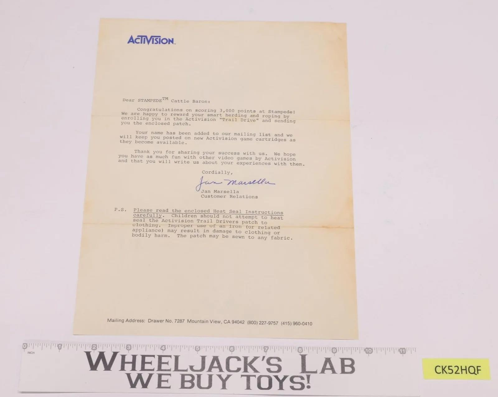 Condition: Activision Stampede Original Letter for the Embroidered Patch Trail Drive. 1980's Atari Video Games. 8.25" x 11". Has some yellowing on letter.