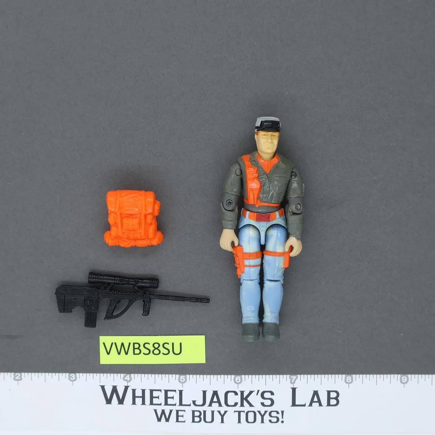 Condition: Rated 88 with light wear. It's not broken. Both arms have faint stress marks at elbow but no cracks. Figure needs cleaning. Our grading scale is 1 - 100 with mint flawless a 100, near mint a 95, excellent a 90, and so on. Comes as shown. Accessories: Comes with orange backpack and one rifle as shown.Joint Condition: Tight.