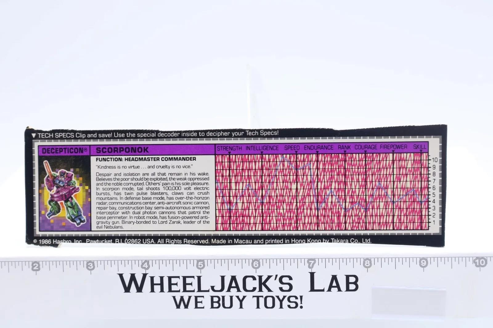 Scorponok Action Figure Tech Spec 1987 Vintage Hasbro G1 Transformers