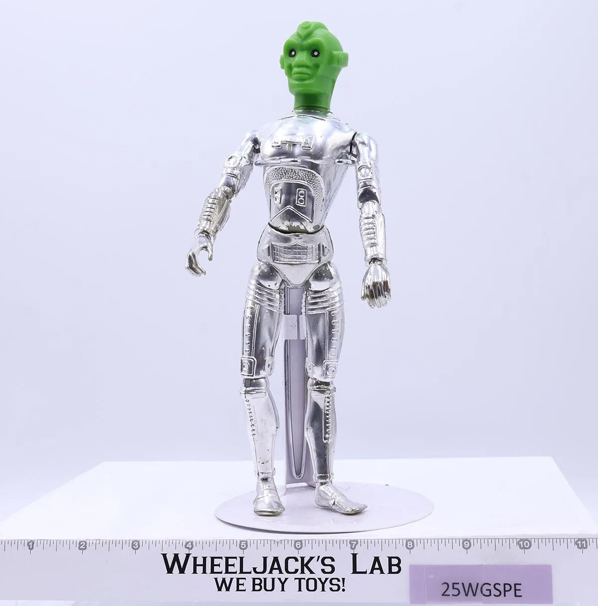 Condition: Rated 80 with some wear. The chrome is still in pretty good shape, but it is a bit dull in its finish. The head is still soft and pliable. Our grading scale is 1 - 100 with mint flawless a 100, near mint a 95, excellent a 90, and so on. Comes as shown. Accessories: None.Joint Condition: Loose; it cannot stand upright alone.