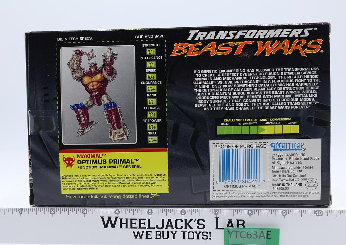 Optimus Primal COMPLETE W/BOX & INSERT Transformers Transmetals Beast Wars MIB