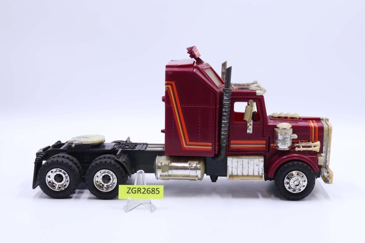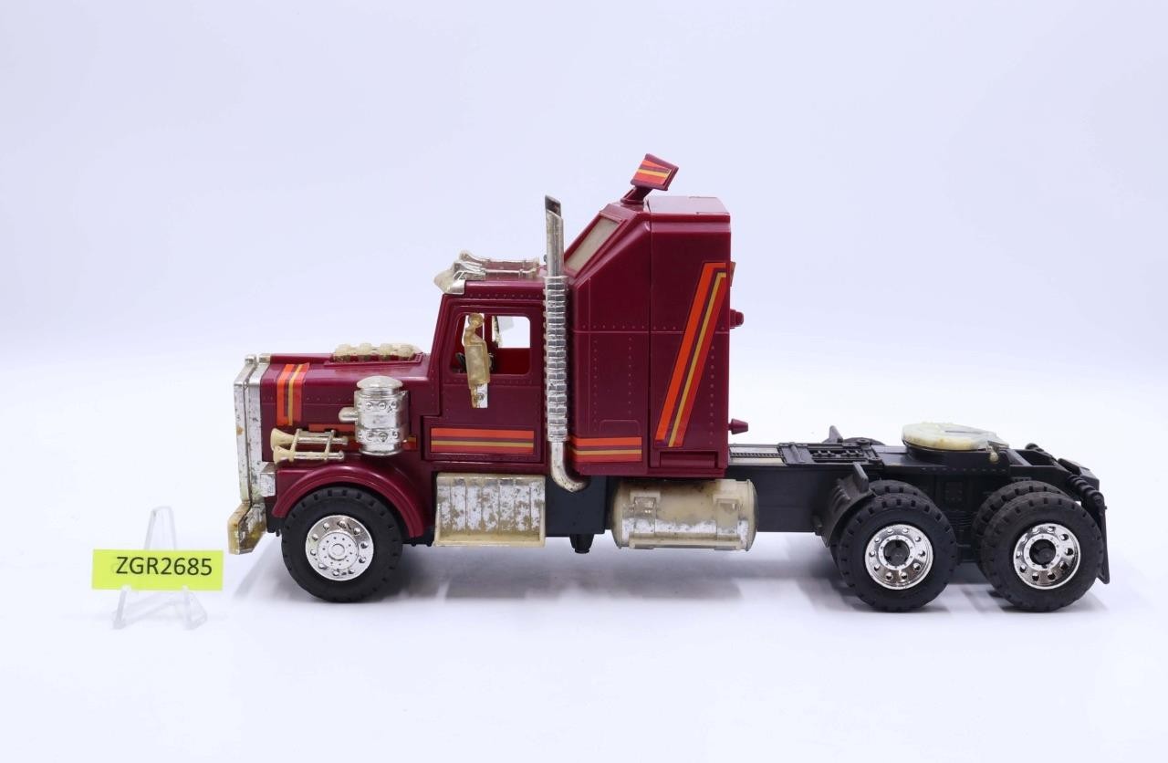 Condition: Rated 65 with heavy wear. It is missing several items, including the side mirror, part of the radar dish, the roof and the ramp for the sleeper compartment. Our grading scale is 1 - 100, with mint flawless a 100, near mint a 95, excellent a 90, and so on. Comes as shown.