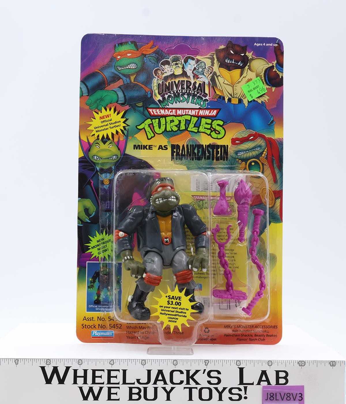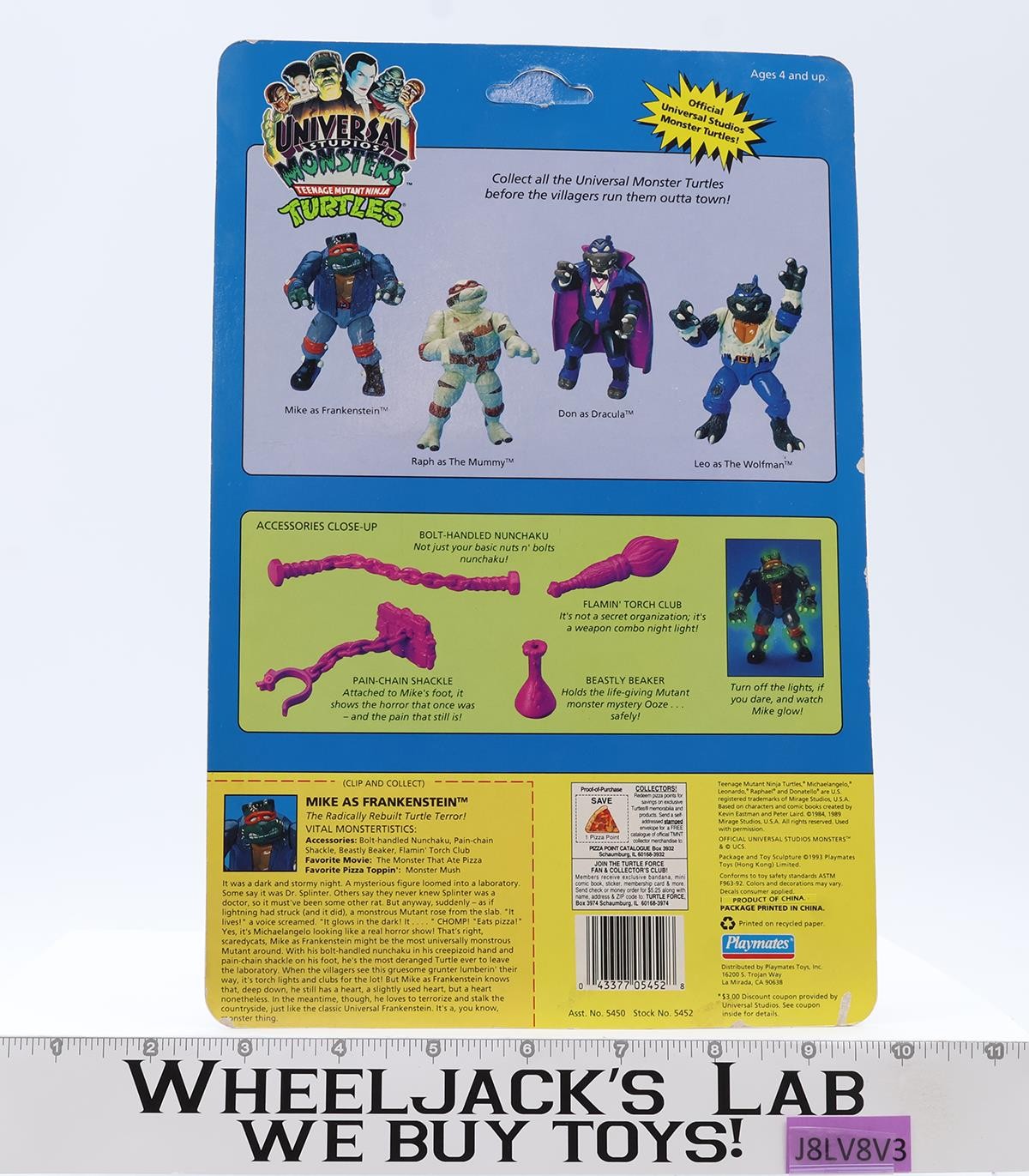 Mike as Frankenstein W/Card & Bubble TMNT Universal Monsters 1993 Playmates NEW