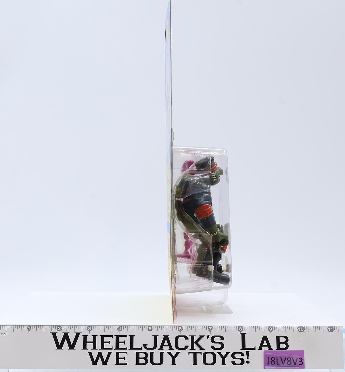Condition: It is new. There is a mark on his nose and one show where they rubbed against the bubble. Card: It has some wear and is unpunched. It lies completely flat. The pictures will show its condition. Bubble: Clear, with no cracks or dents. The bubble has begun to pull away from the card. There is a bug inside one of the weapon's bubbles. The bubble does have scuff marks. Comes as shown.