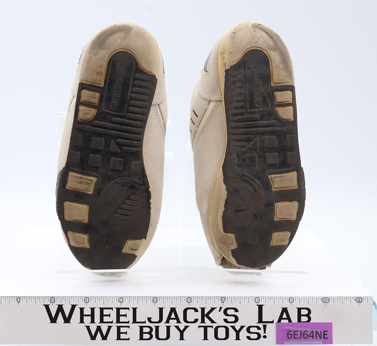 Condition: The shoes have heavy wear. The toe on the left foot is open. The right toe is frayed, as well as along the ankle. The sole is well-worn. The box has some wear, but is intact. Comes as shown.