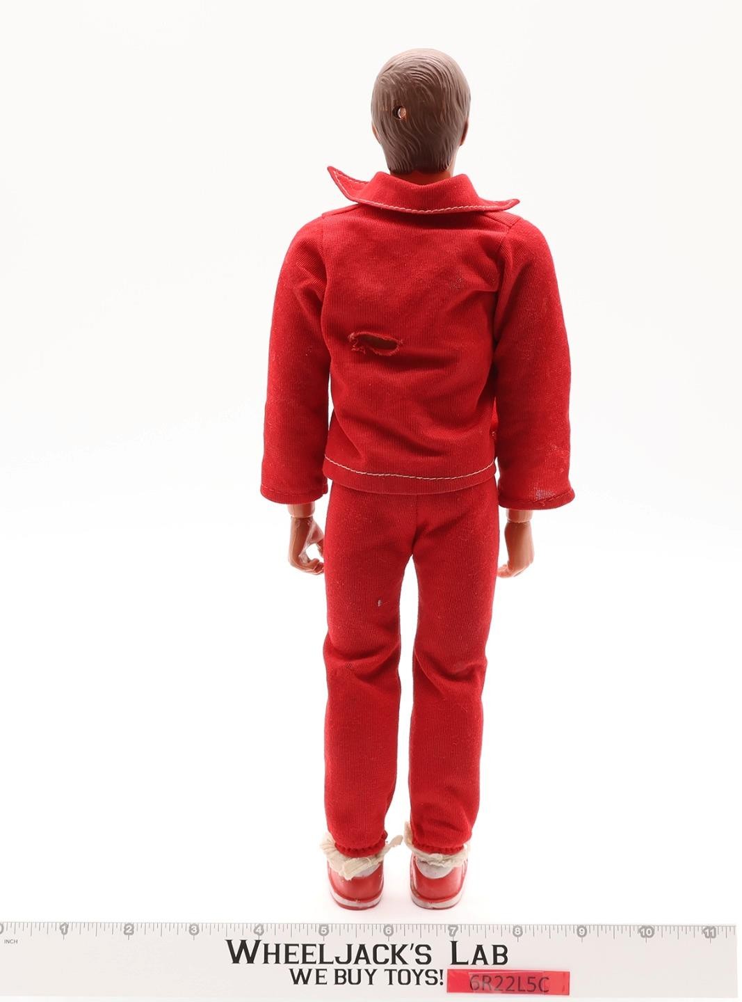 Accessories: Clothing shows some wear, especially the legs of his pants. Shoes, socks, a booklet, and the original motor engine block are included. Comes as shown.