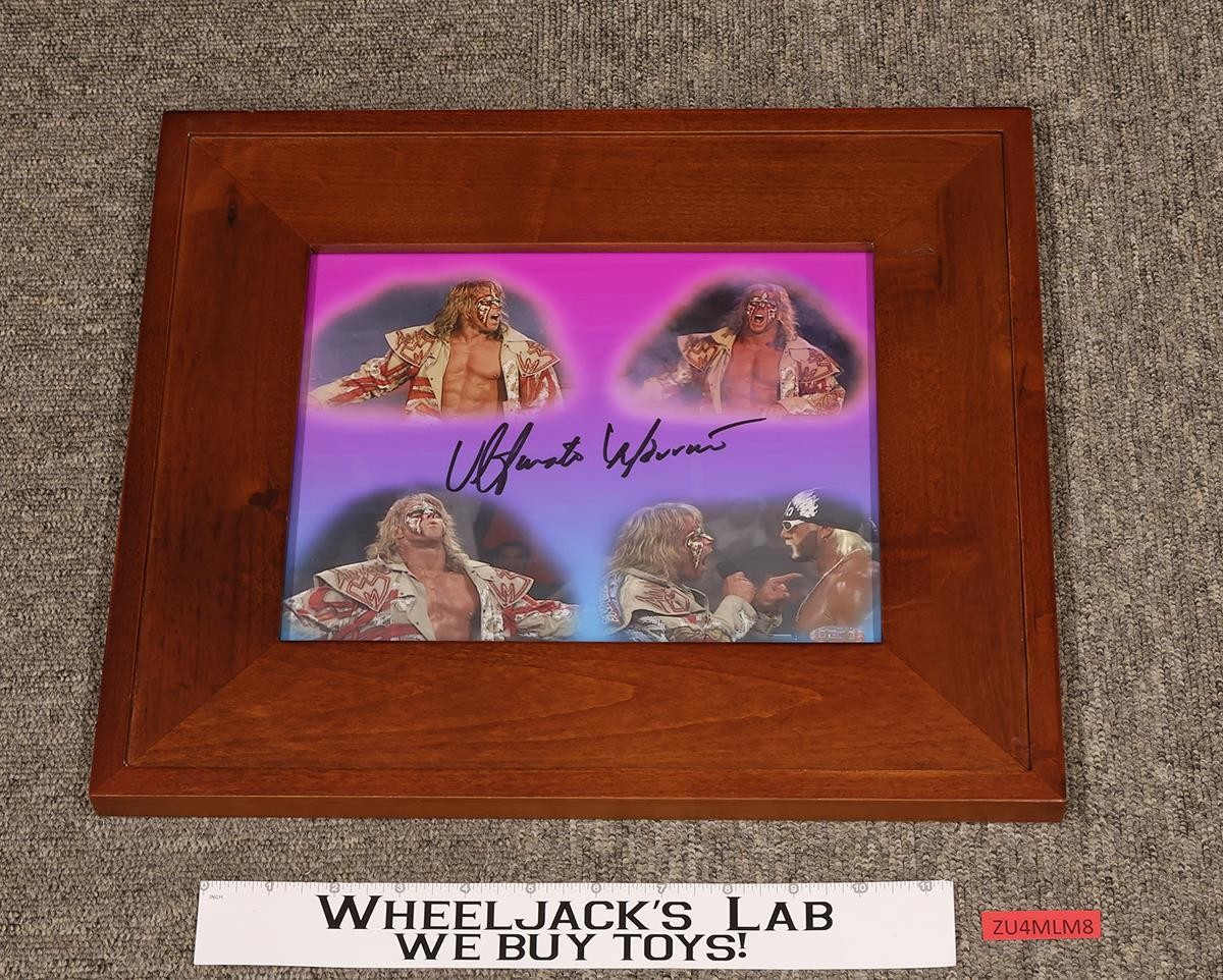 Condition: The picture has light wear. It has been autographed by the Ultimate Warrior. Includes a certificate of authenticity. The frame measures approximately 15 inches x 13 inches. Comes as shown.