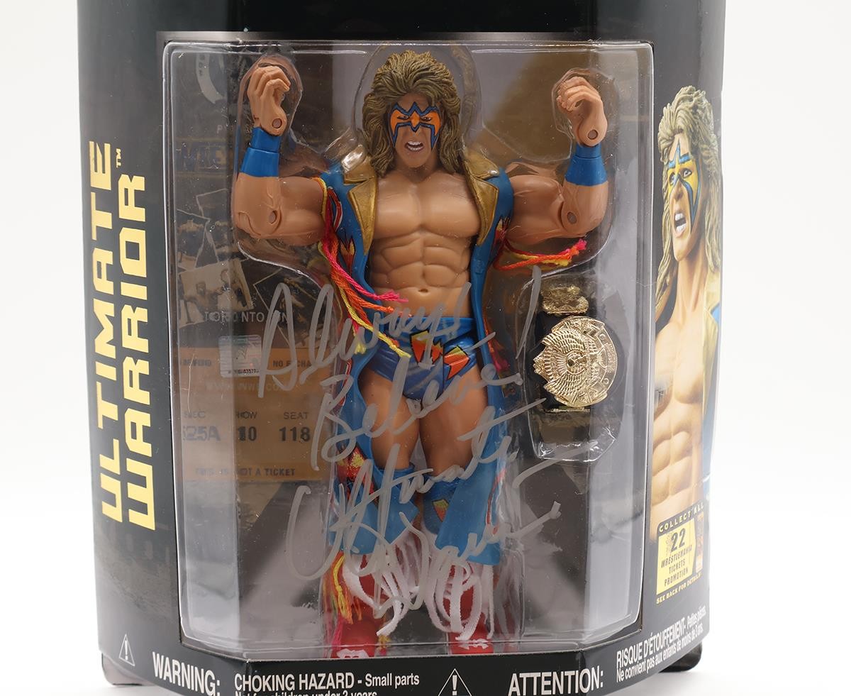 Condition: The item is mint in factory-sealed packaging. The packaging has light wear. It has been signed by Ultimate Warrior. It does not have certification. Comes as shown.
