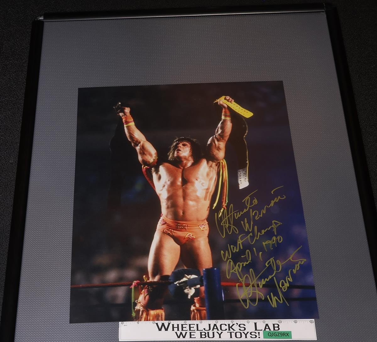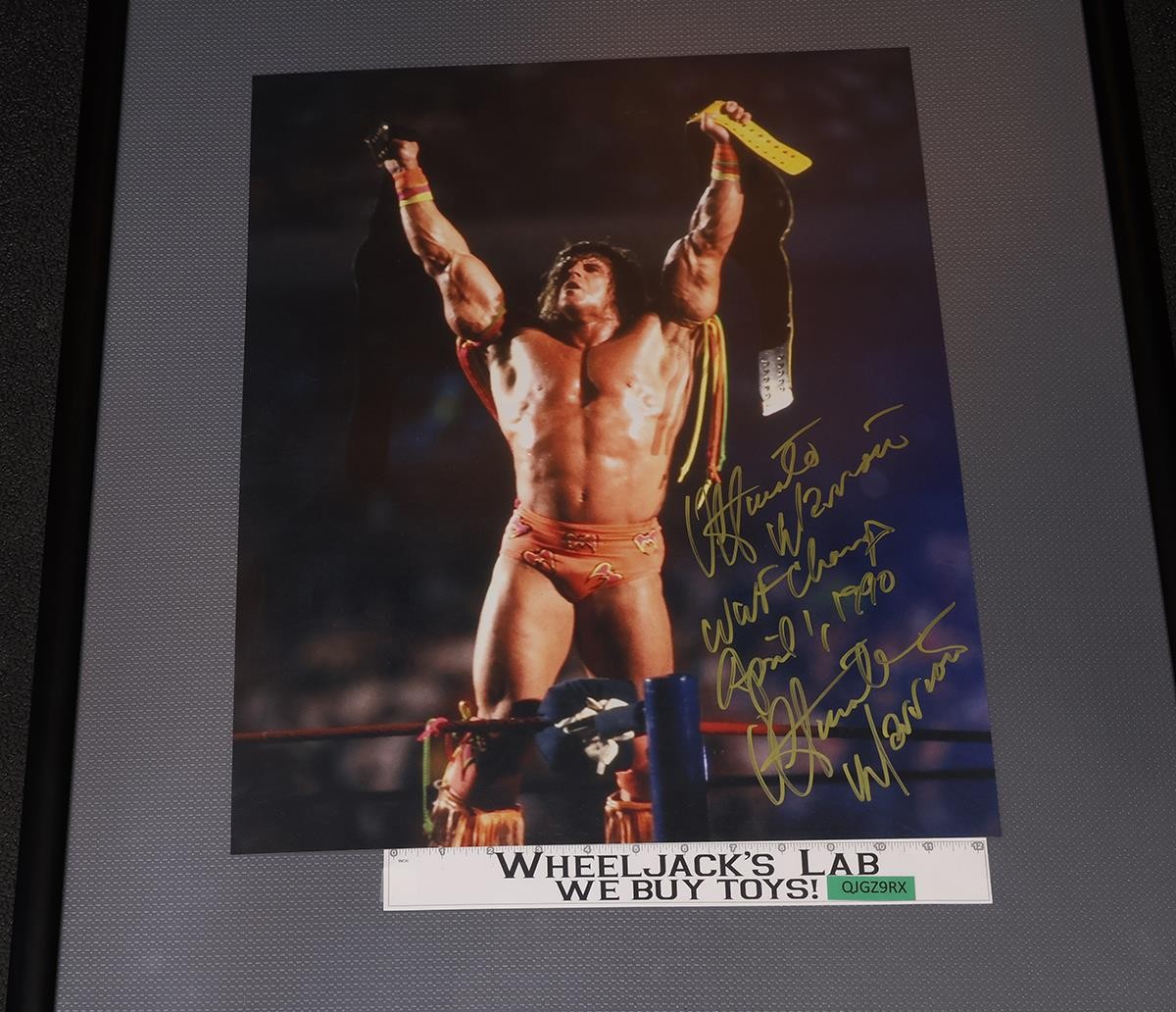 Condition: The poster has light wear and has been signed by Ultimate Warrior. It does not have a certificate of authenticity. Measures approximately 20 inches x 16 inches. Comes as shown.