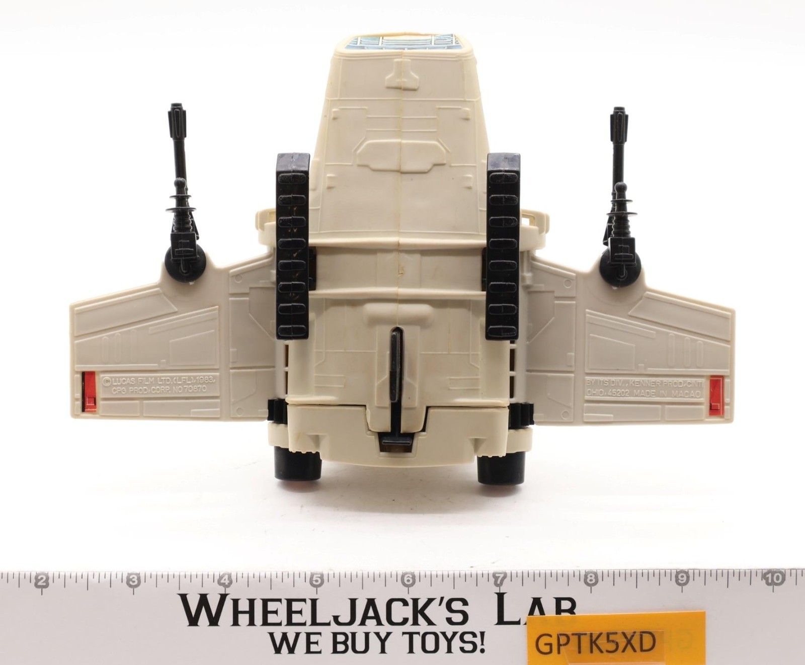 Condition: Rated 80 with some wear and discoloration, needs cleaning. The wing mechanism works. It is not broken. Our grading scale ranges from 1 to 100, with Mint Flawless at 100, Near Mint at 95, Excellent at 90, and so on. Comes as shown.