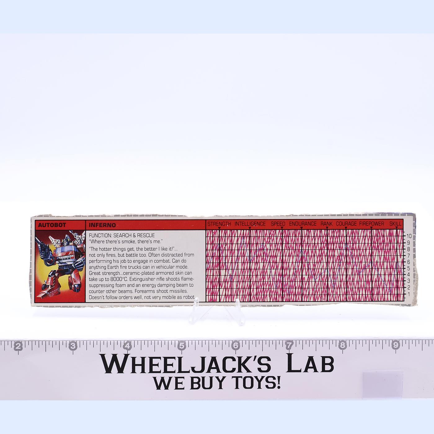Inferno Action Figure Robot Tech Spec 1985 Vintage Hasbro G1 Transformers