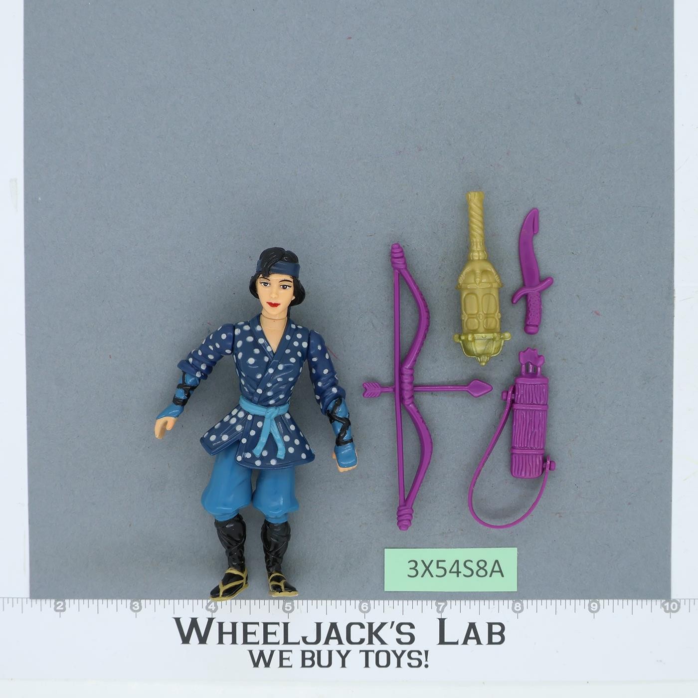Condition: Rated 90 with light wear. Princess Mitsu from TMNT Movie III is in excellent condition! Has a slight bit of extra paint above the left shoe and a smudge of red right thumb. Our grading scale is 1 - 100 with mint flawless a 100, near mint a 95, excellent a 90, and so on. Comes as shown.