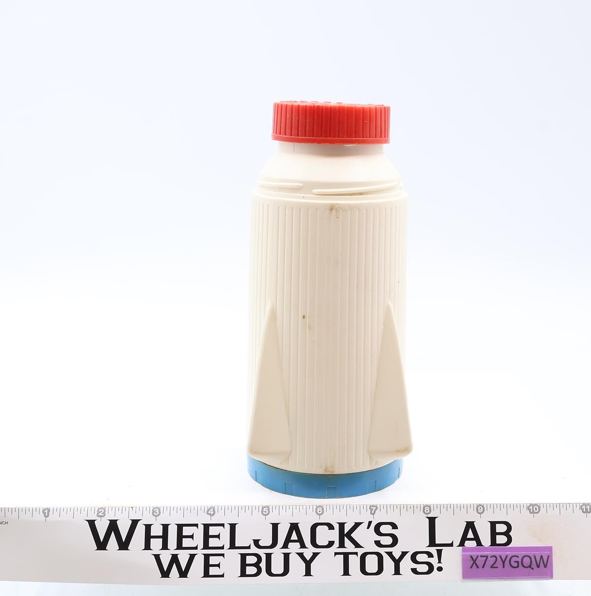 Condition: The thermos is plastic with some wear. Missing outer cap. Inner liner is intact. Comes as shown.