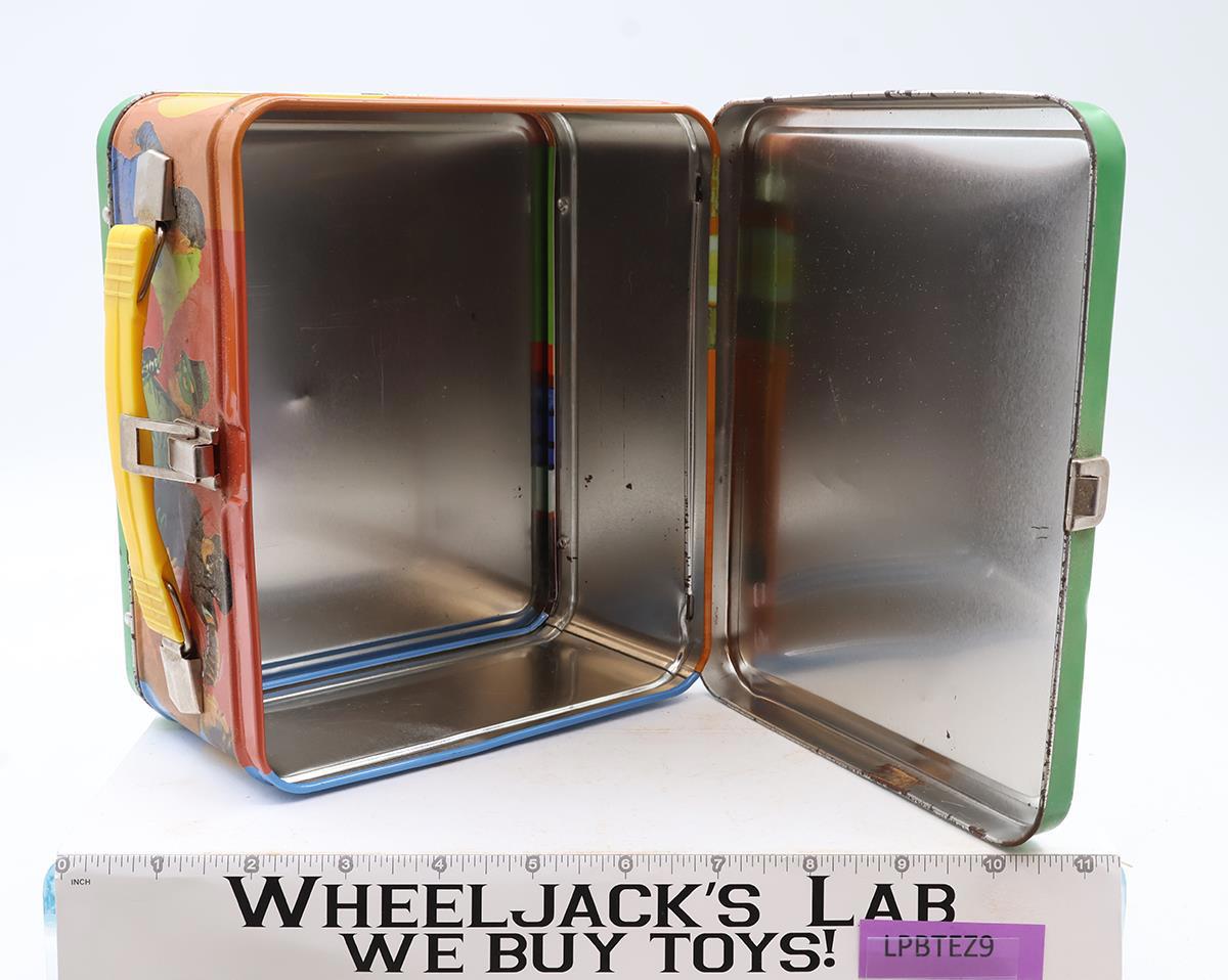 Condition: The lunchbox is made of metal. It has wear and needs cleaning. There is rust on both the inside and outside of the box. The latch, handle, and clip are intact. The thermos is included. Comes as shown.