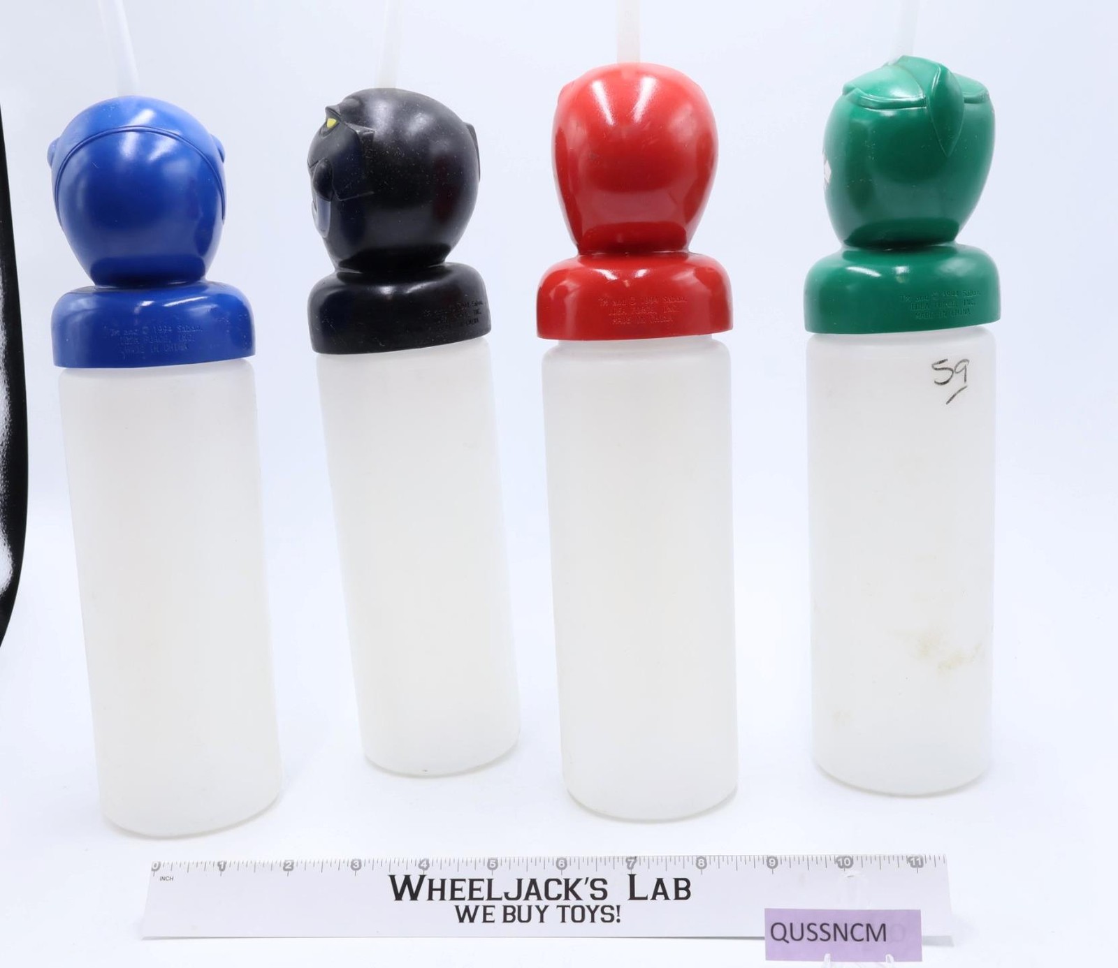 Lot of 4 Power Rangers Water Bottles 1994 Bandai Action Figures