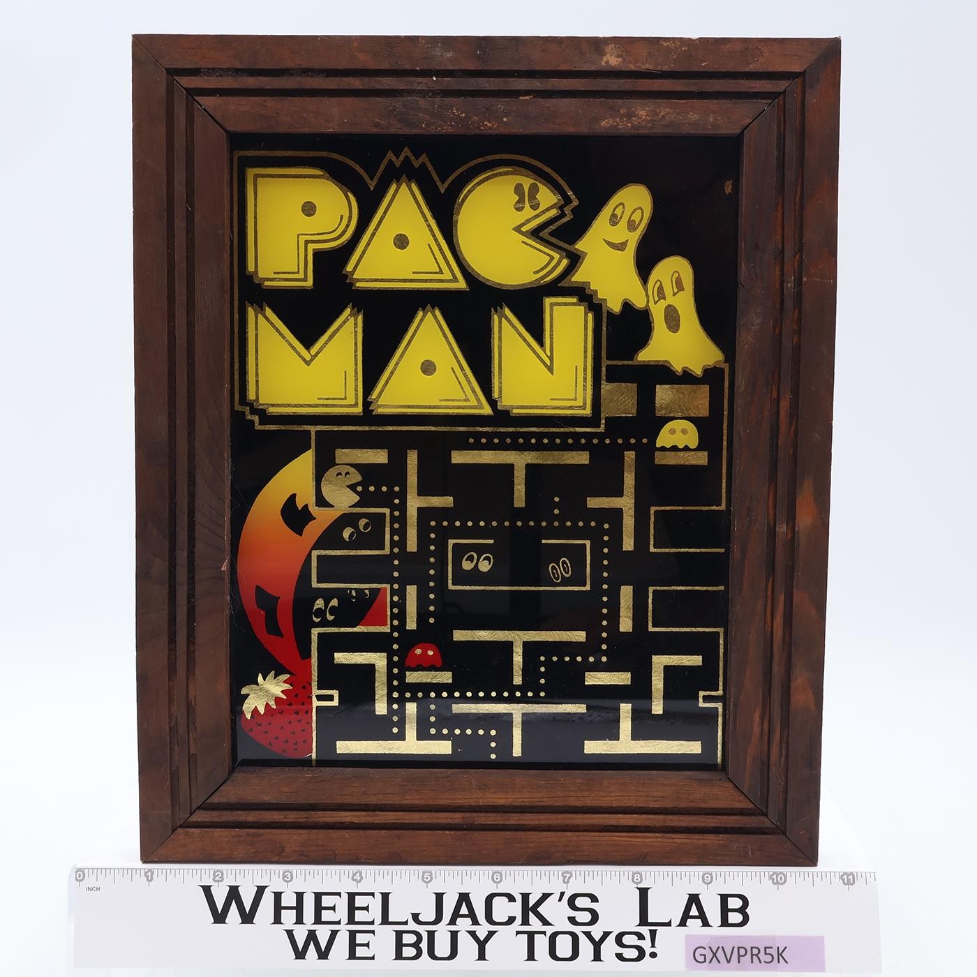 Pac-Man Framed Foil Glass Mirror Carnival Arcade Prize 1980s Vintage