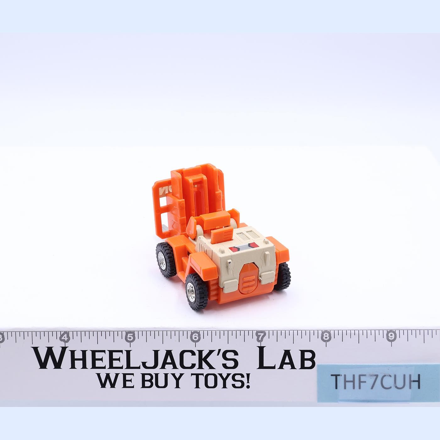 Figure Condition: So what is it? The MR-34 Spoons Gobot has at least one variant. In 2012 an estate put dozens of “Autocon” Spoons figures for sale. Most collectors don’t even know what they are or that they are not a hoax. An Autocon employee placed a special order for the MR-34 Spoons. Which came with a really cheesy box and even instructions. They came with the sticker at the top of the forks and are a slightly different color. The toys, though, never got distributed or were never fully distributed as intended. Rated an 85 with light wear. It is not broken. My grading scale is 1 – 100, with mint flawless a 100, near mint a 95, excellent a 90, and so on. Comes as shown. Comes as shown.